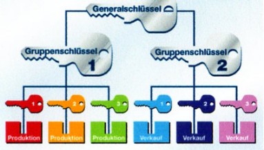 Vorteil: Die Gruppenschlüssel schließen nur ihre entsprechende Gruppe. Der Generalschlüssel schließt alles.